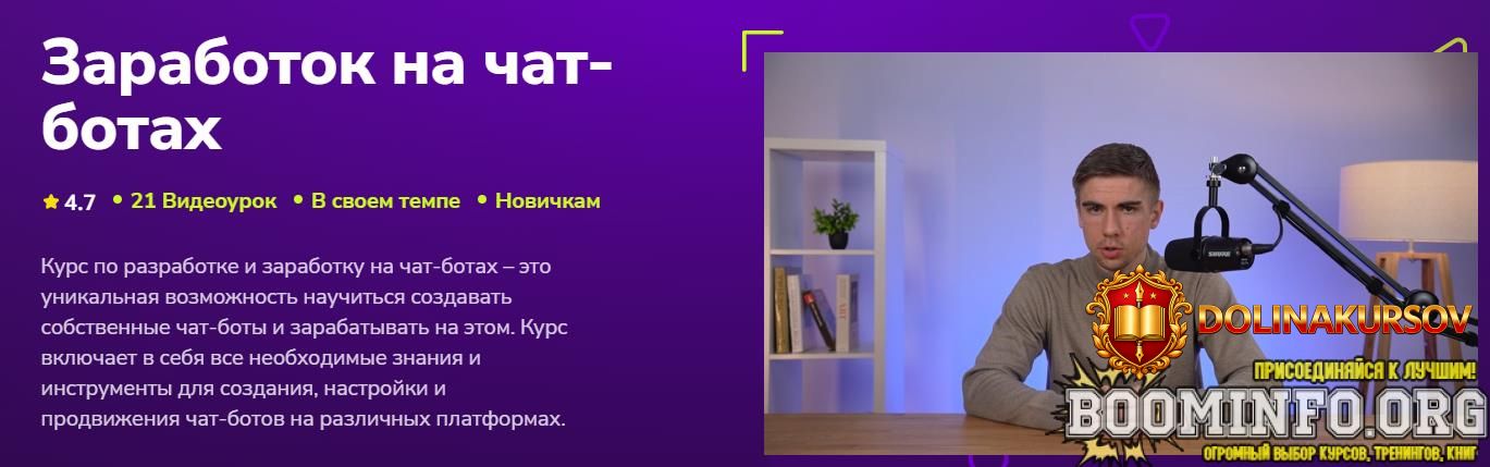 Курс включает в себя все необходимые знания и инструменты для создания, настройки и продвижения чат-ботов на различных платформах.